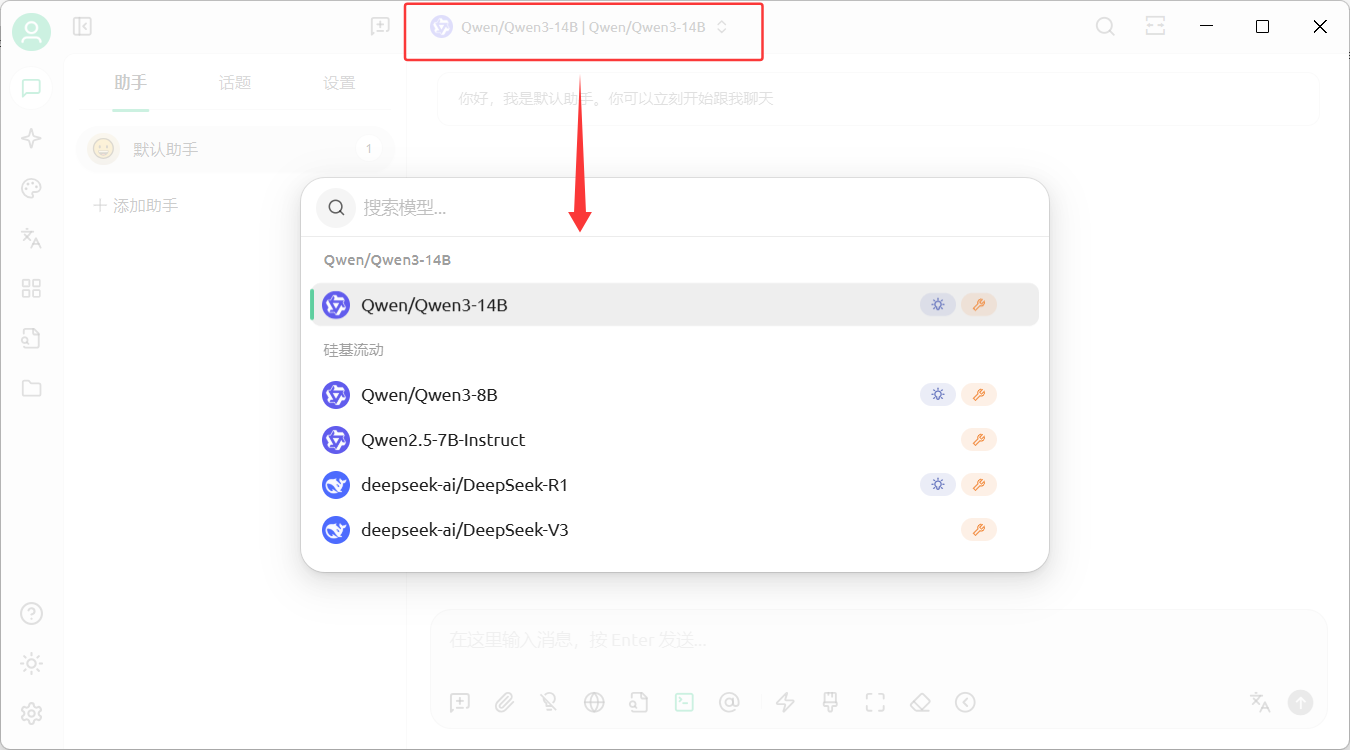 图:模型切换 - 点击对话框中的