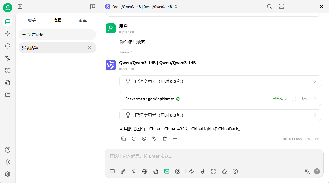 图:选择MCP服务器 - 在对话框中发送指令或问题,即可获取结果