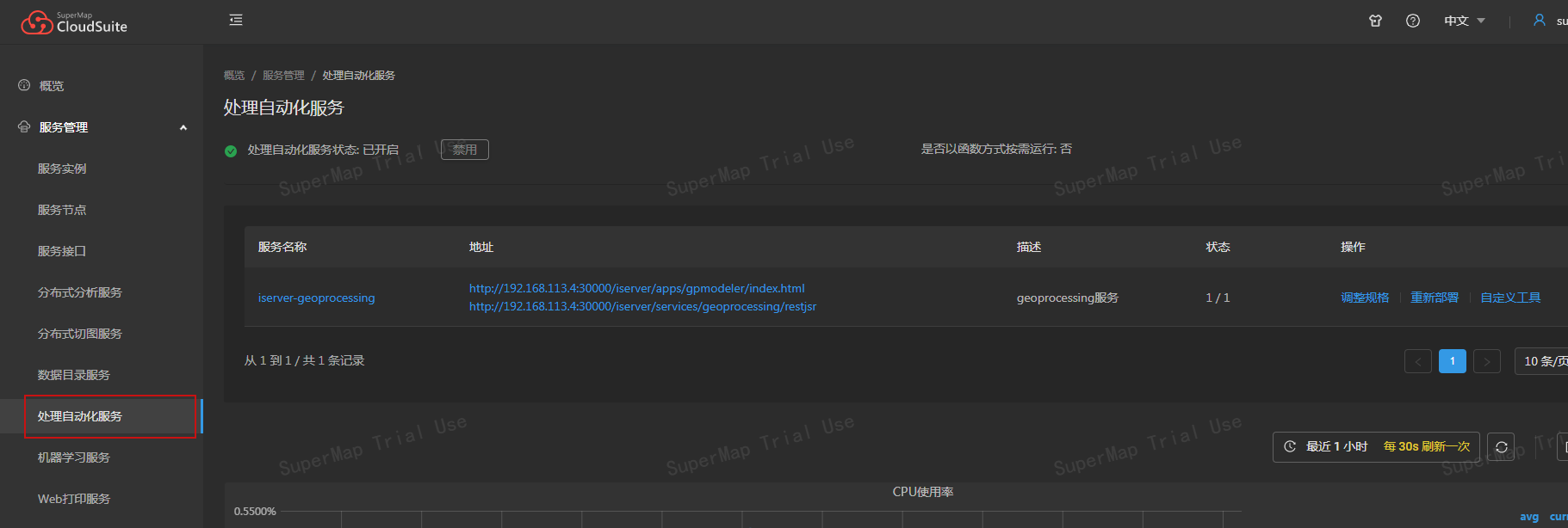 (1)如需使用AgentX的iServer GPA MCP 服务,需要在云套件中开启“处理自动化服务”,如下图所示:
