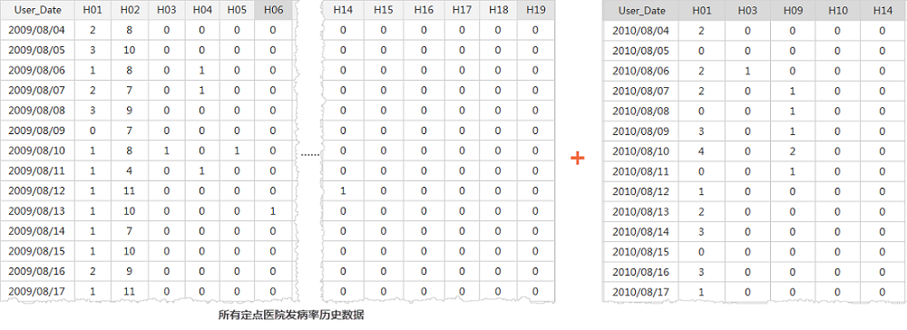 - 历史数据:指定的历史数据集及所在数据源。以下案例中表示19家医院去年的发病数据。