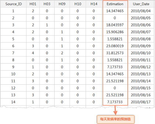 - 结果说明:预测该区域某时间段内,疾病每天的发病率结果如下图: