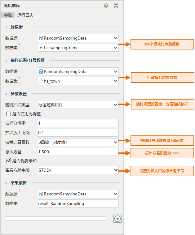 - 参数设置:根据不同随机抽样类型进行设置。