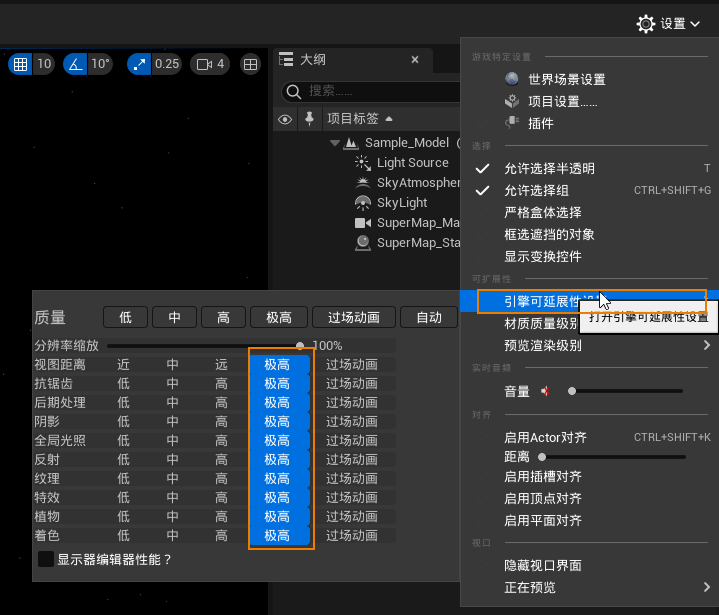 | Default performance settings cause poor display | If the default performance setting is low, modify the parameters in Unreal Engine Panel -> Settings -> Engine -> Scalability -> Engine Scalability Settings to improve the quality of data rendering.