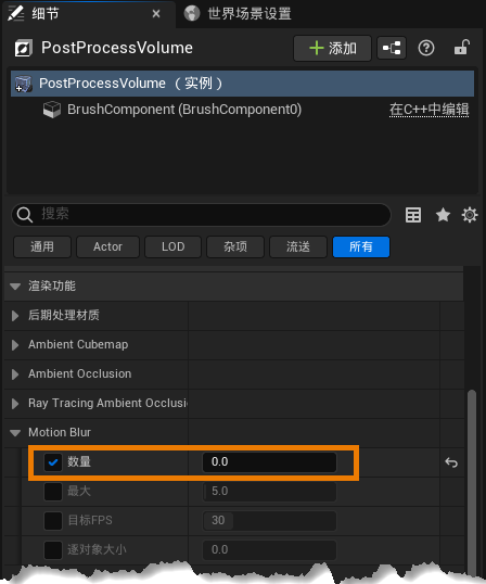 It is recommended to click Off Unreal Engine Project Settings -> Engine - Rendering -> Default Settings -> Motion Blur . Or adjust the Quantity value for Rendering Functions -> Motion Blur to 0 by opening the PostProcessVolume Properties Settings panel.