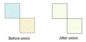 - If the polygon objects involved in object operation intersect at a line, the adjacent edges between these polygon objects disappear, merging into a simple polygon object.