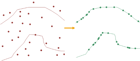 生成邻近点功能用于将线和面周围的点对象移动到线或面边界上。