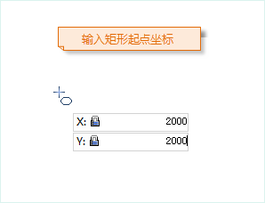 - 将鼠标移动到地图窗口中,可以看到随着鼠标的移动,其后的参数输入框中会实时显示该点的坐标值。在参数输入框中输入椭圆的起始点坐标(可以通过按 Tab 键,在两个参数输入框间切换)后按 Enter 键,确定椭圆的起始位置。
