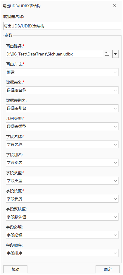 - 在写出UDB/UDBX表结构中配置表结构对应关系,如下图: