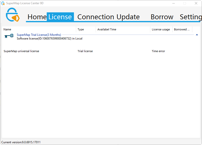SuperMap License Center is used to manage all works related with license. There are: Config License Info, Manage License, and checking the license status and usage.