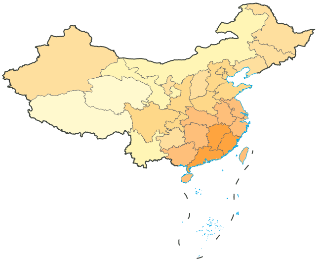 The District_L dataset represents the national, provincial boundaries and coastlines. It can be used to generate the administrative boundary layer for the base map. The ID field in the attribute table of the District_L dataset records the boundary type information. The values 10, 20, 30, and 11 respectively indicates the national boundary, provincial boundary, coastline, and unsettled national boundary.