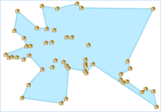 Instance: A logistics company can use all dispatching points to calculate a concave polygon thereby to divide the delivery area according to all positions where packets will be dispatched to. Set the minimum angle is 45 degrees, and the result is as follows:
