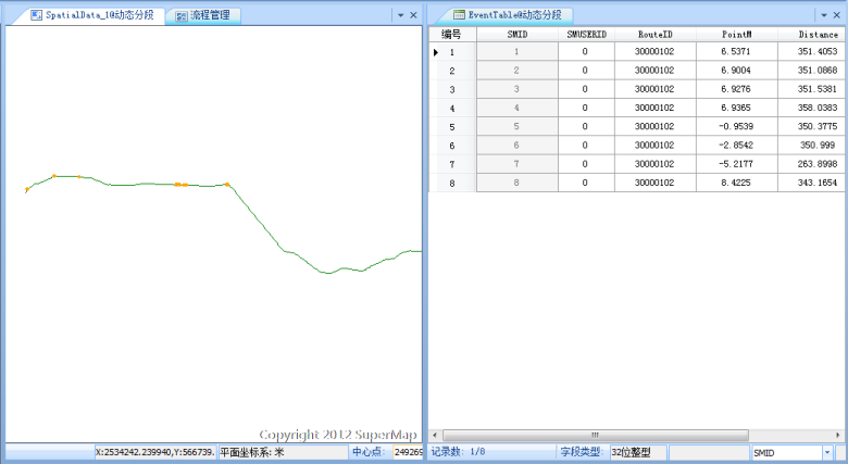 - The left part of the window displays the route data and spatial data, the right part displays the event table. When changing one data, the associated data will changing accordingly and displaying in the window in real time.
