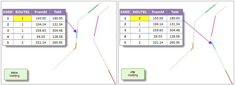 - When changing the route ID of spatial data, the corresponding route ID in the event table and the geometry of the spatial data will be changed at the same time.