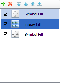 A fill symbol consists of one or more child fills, and a child fill can be an image fill or a symbol fill. To make a fill symbol, the user must add a child fill or child fills and set the style(s) of the child fill(s) as needed.