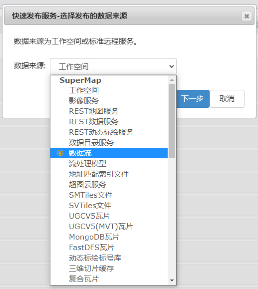 SuperMap iDesktopX 提供了矢量流数据的托管、转发等服务能力,支持 iServer 和 Http/Https 两种服务类型。