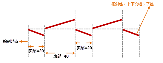 | 倾斜线(上下交错)类型子线虚实模式示意图 |