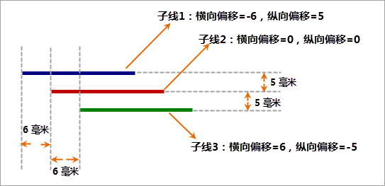 在线符号编辑器中,新建的子线默认的偏移量为:横向偏移=0,纵向偏移=0,偏移量单位为:毫米。用户可以通过设置子线的偏移量来控制子线间的相对位置。