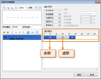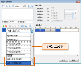 设置了子线的类型为符号子线时,就可以进一步指定构成子线的符号,以及调整子线的虚实模式。