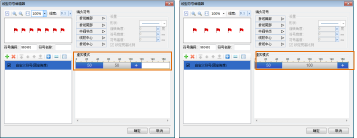 | 设置符号子线的虚实模式(对比两种虚实模式设置) |