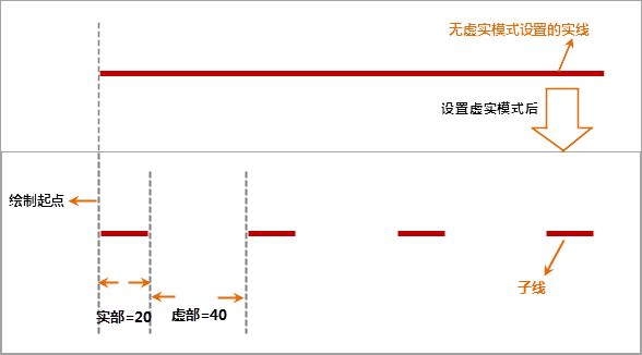 - 接下来,子线有长度 40 的距离不绘制任何内容,即空白部分为所设置的虚部 40;