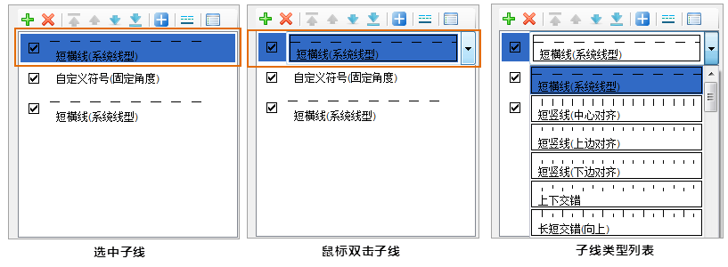 线型符号编辑器的子线管理区域,可以对构成线型符号的子线进行有效的管理,如下图所示。
