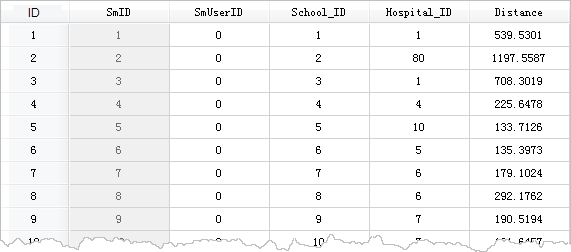 Figure Append hospital names to school data - After the appending operation, there are hospital ID, names, distance information in the school point data. After creating label matrix map for the School dataset, hospitals and distance information to schools will be vividly displayed.