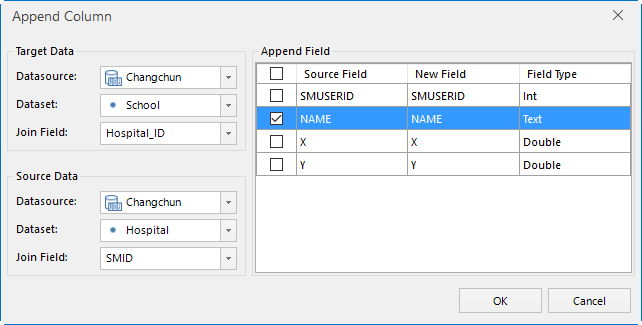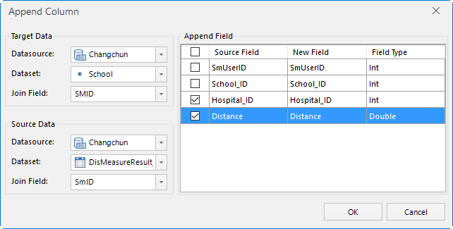 Figure Append ID and distance of hospitals nearest to schools - According to the ID of hospitals, you can add corresponding hospitals to point dataset for schools. Specific parameters are as follows: