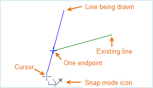 Snap the drawing point to another line segment. Illustration: Snapping another line segment. |