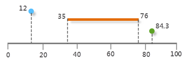 As shown below, the line in gray represents the mileage of the freeway with measure value, and the points and line segments on it represent two kinds of events: Two accidents happened on the freeway with the locations 12 kilometers and 84.3 kilometers, and road surface collapse happened between 35 kilometers and 76 kilometers.