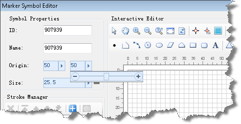 • Set it through the two boxes to the right of Origin in the Symbol Properties area by directly inputting values, or by adjusting the values in the slide bar which can be opened through the little arrow on the right. The first value represents the horizontal axis value, and the second value represents the vertical axis value.