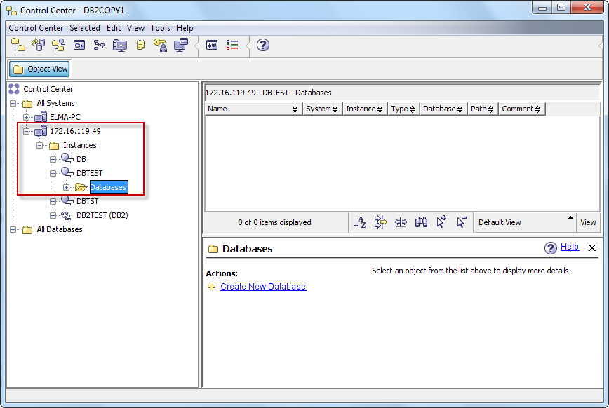 We can also catalog the DB2 node in Control Center through human computer interaction of interface method. It has two processes: the server node cataloging and the instances of server cataloging. The Control Center open with: Program -> IBM DB2 -> DB2COPY1 -> General Administration Tools -> Control Center.