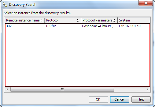 When set the instance, you can search the system by clicking the Discover button, and select the instance name to connect, as shown below.
