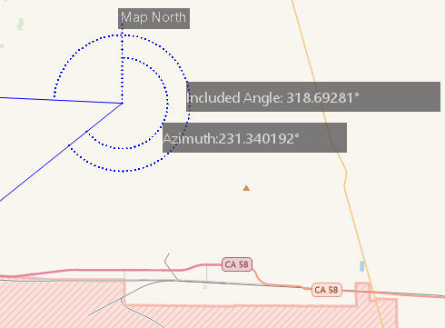 - Click to specify the start point of one edge, and then a dotted line pointing to true north shows up. Move your mouse to form a temporary line. The product will show the angle (or the azimuth) between the dotted line and the temporary line.