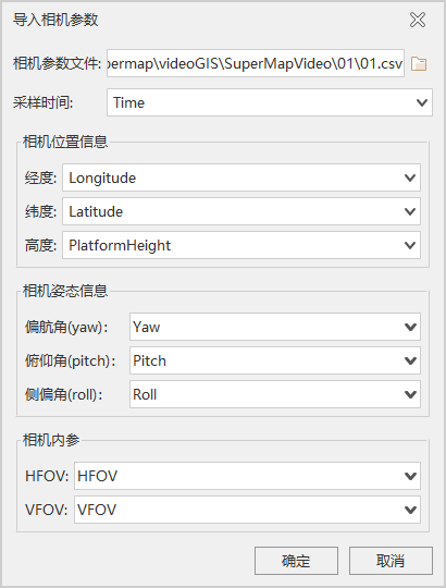 - 相机姿态信息:选择相机的偏航角、俯仰角、侧偏角字段。