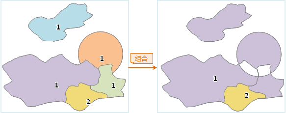 - 融合后组合:具有相同属性字段值且相交/相切的对象融合成一个简单对象,融合后若对象的融合字段值相同,将其组合成一个复杂对象。