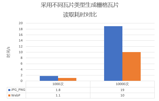 WebP格式图像的编码时间“比JPEG格式图像长8倍”。因此在相同条件下,采用WEBP格式生成栅格瓦片耗时相较其他格式长。