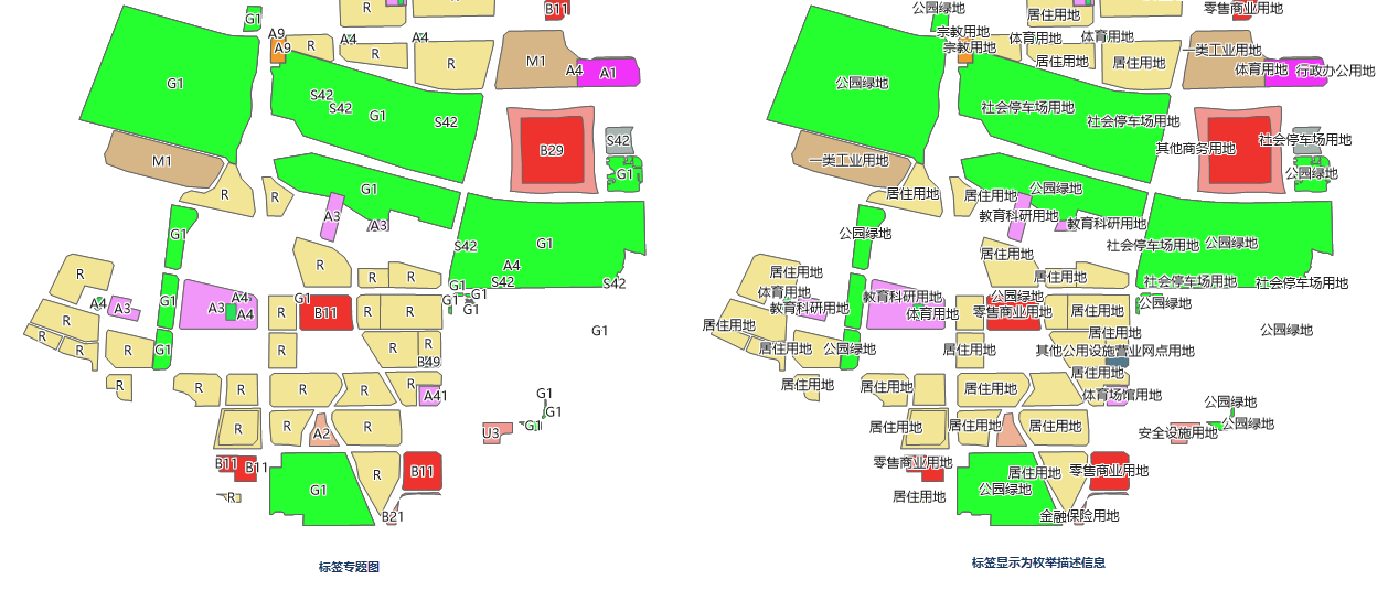 - 显示小对象标签:勾选该复选框,可以显示标签专题图中小对象的对应的标签,否则,将根据比例尺的大小情况,忽略部分小对象对应的标签,即小对象的标签不显示。