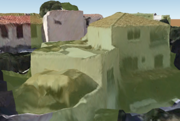 当使用贴对象高度模式(ClampToObject)时,矢量数据会随着模型数据的起伏,完全贴附至模型数据上,即相对于模型数据的高度为零。如下图所示,使用贴对象高度模式时,面对象的海拔高度信息则被忽略了,面对象将依据模型的起伏的趋势附着在模型数据表面。贴对象高度模式常应用于倾斜摄影模型场景中。