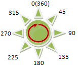 - 光源方位角:光源方位角是用来确定光源的方向,是用角度来表示的。如下图,以正北方向为0度开始,沿顺时针方向测量,从0度到360度来给各方向赋角度值,因而正北方向也是360度。正东方向为90度,正南方向为180度,正西方向为270度。方位角的默认值采用315度。