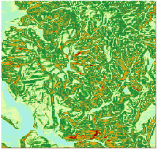 - 坡度图:对 DEM 栅格数据生成坡度图。系统默认设定的光源方位角为315度、光源高度角为90度、高程缩放系数为1。
