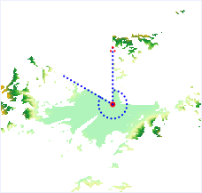Latitude Z-factor 0 0.00000898 10 0.00000912 20 0.00000956 30 0.00001036 40 0.00001171 50 0.00001395 60 0.00001792 70 0.00002619 80 0.00005156 - 可视域图:是某一观察点的可视区域范围图,通过拾取或设置该点的观察高度、观察角度范围生成可视域。默认观察范围为360度。