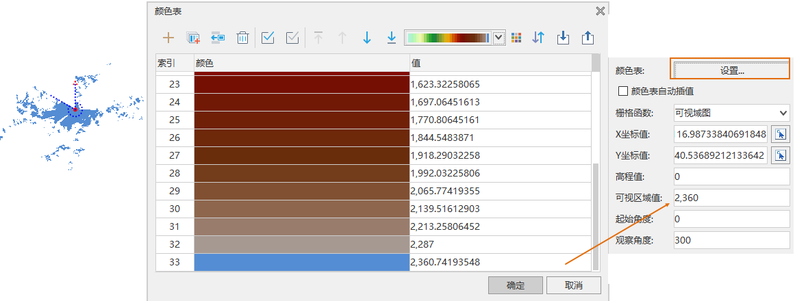 - 可视区域值:当前可视区域的颜色,通过颜色表中栅格值设置当前可视区域颜色。