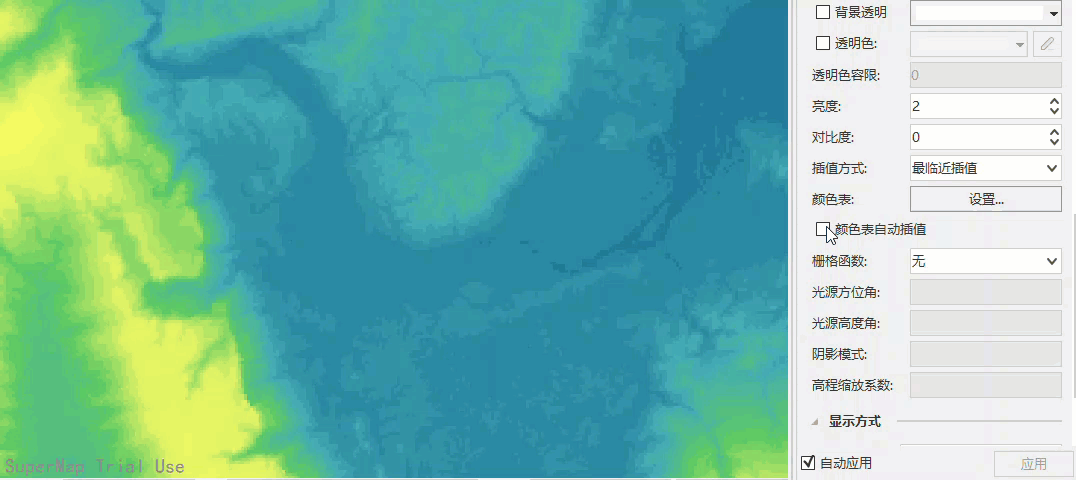 颜色表自动插值功能可以对栅格数据进行重采样,优化栅格单元格边界,让栅格颜色效果更加光滑。