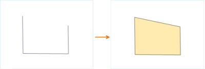 线对象转换成面对象时,闭合线对象转换为面对象的边界;未闭合的线对象则会首尾相连之后,转换为面对象的边界。如下图所示,图1 是将闭合线对象转换为面对象,图2 是将非闭合线对象转换为面对象。