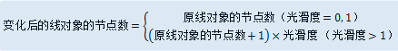 - 光滑度表示让原有线对象变得更为光滑的程度,该参数值与变化后的线对象的节点数成正比。其值类型为整数,取值范围为0-2147483647。光滑度与节点的具体关系如下所示: