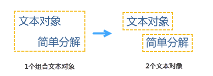 - 简单分解:将复合文本对象分解为多个子对象文本字符串,如下左图为两个子对象组合成的复合文本,简单拆分后,则变成了右图的两个文本对象。