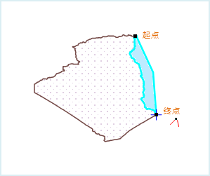 - 裁剪模式:选中待更新对象,绘制的起点可在待更新对象的边界上,或不在边界上,但绘制的折线需与线对象或者面对象的边界线有两个或以上的交点。