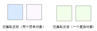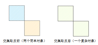 - 如果参与运算的对象仅相交于点,则这些面对象被合并成一个复杂对象(如下图生成一个具有两个子对象的复杂面对象)。