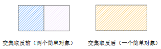 - 如果参与运算的对象仅相交于线,则这些对象间的相邻边线将消失,合并成一个简单对象。