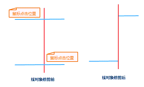- 修剪操作只对与基线相交的线对象有效,而对于不相交的线对象将不进行任何操作。